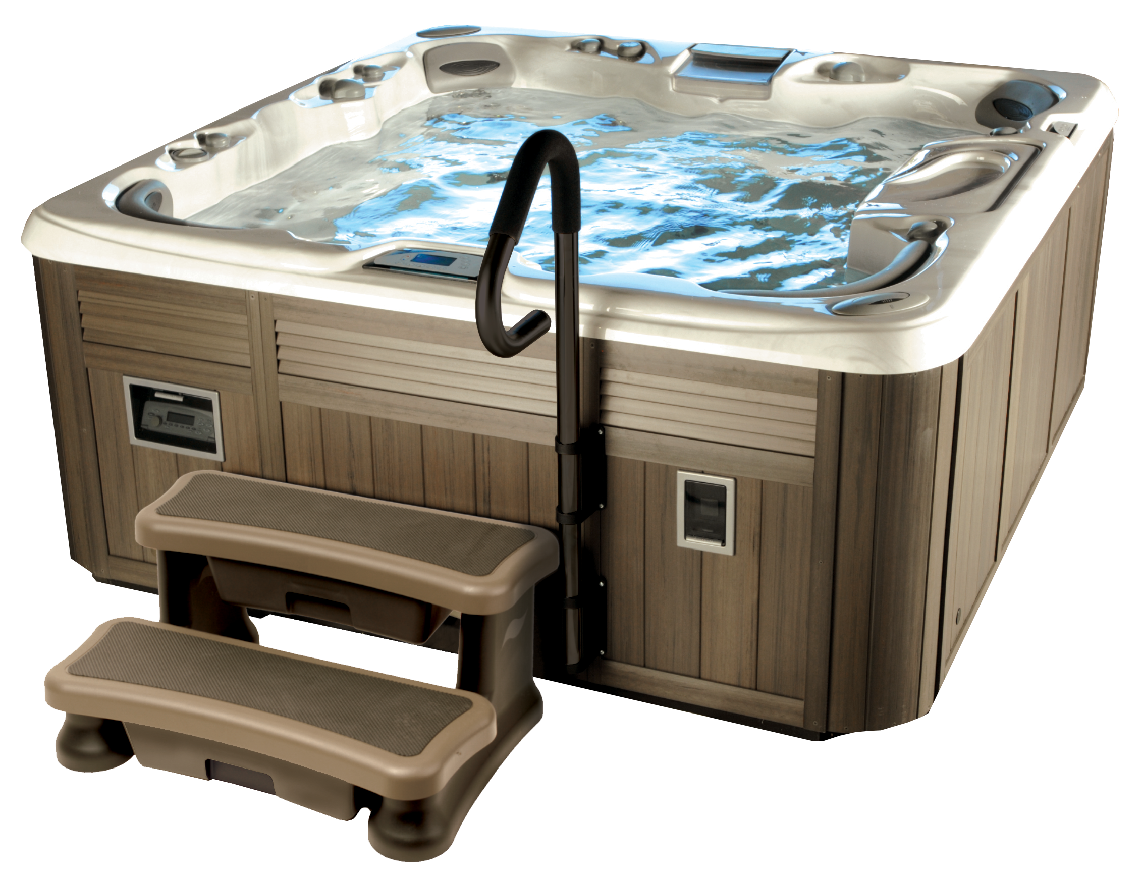 The combination of water and slippery surfaces makes every spa a potential hazard. That's why we invented Safe-T-Rail. We believe this product has more upside sales potential than any other product we offer. Don't let a single customer-young or old-leave your showroom without considering a Safe-T-Rail for their spa.